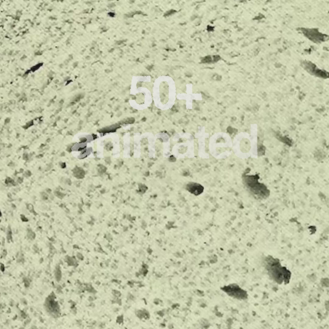 Over 50 animated material-based textures in 4K quality—ranging from gritty urban surfaces to organic natural patterns. Use them as overlays, backgrounds, displacement maps, or texture fills to elevate your edits.